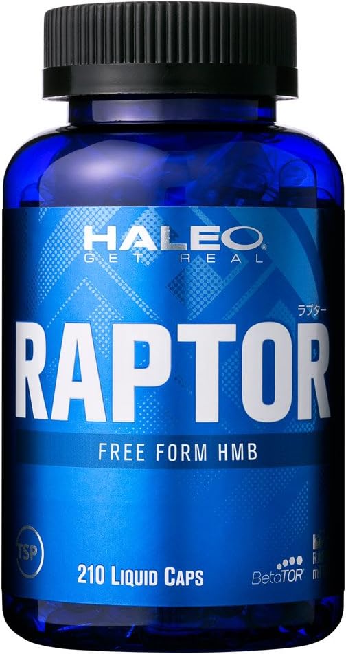海外のサプリはちょっとなぁ…という方は、国産メーカーHALEO(ハレオ)のHMBサプリ「RAPTOR(ラプター)」をチェックしてみください。ボディビルダーのジュラシック木澤選手も使用しており、クリアマッスルと同じく遊離酸HMBを配合。さらにはL-カルニチン・グリセロホスホコリン(α-GPC)・ビタミンD3も含まれている高級なサプリになっています。
